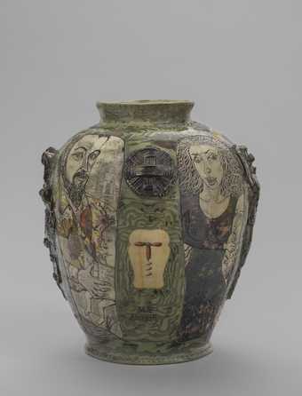 Perry's pots take a classical form and usually have a combination of both text-based and figurative designs. They sometimes include an autobiographical element. You can see images of Perry as Claire, his female alter-ego, and stories from the artist's childhood on the surface of his pots. Perry’s designs explore universally human topics such as identity, gender, sexuality and social status. They often also include references to contemporary culture.