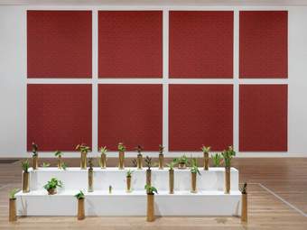 Photography arrived in Congo or even in Africa through colonial expeditions and the photography helped a lot to create this image of ‘the other’ or ‘the savage’ or ‘the foreigner’ or something like that. I wonder myself as an African or as a Congolese how am I able to kind of produce a new narrative with the same medium? Making 802, what I thought to do as an installation was to create a kind of showroom. It's like going in the shop and buying something, then you have catalogues of wallpapers, catalogues of ceilings, shelves and plants with a plinth in a way. But all these elements are based on the colonial extractions and racial issues.